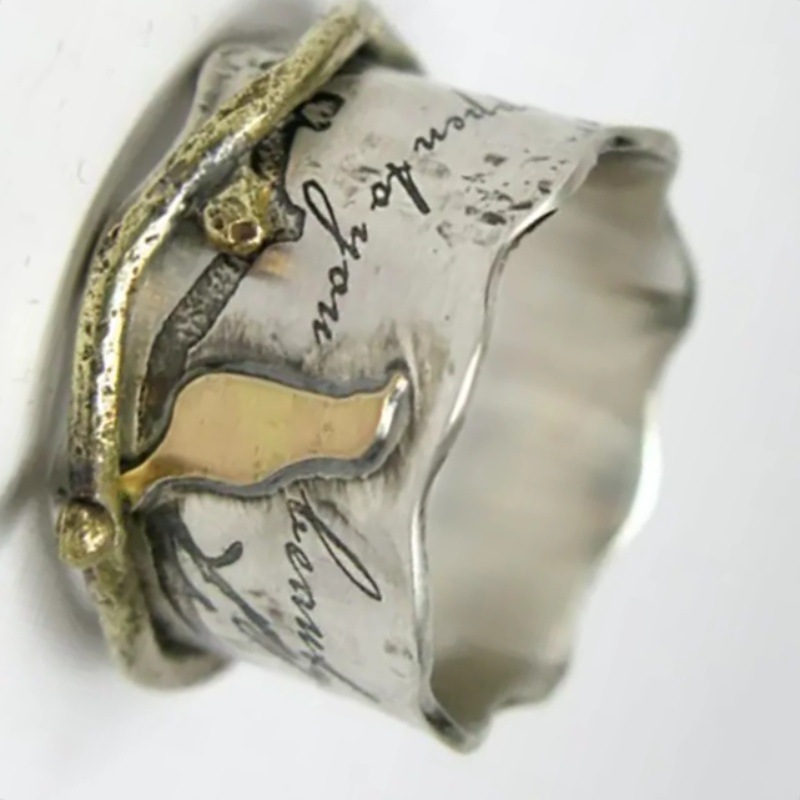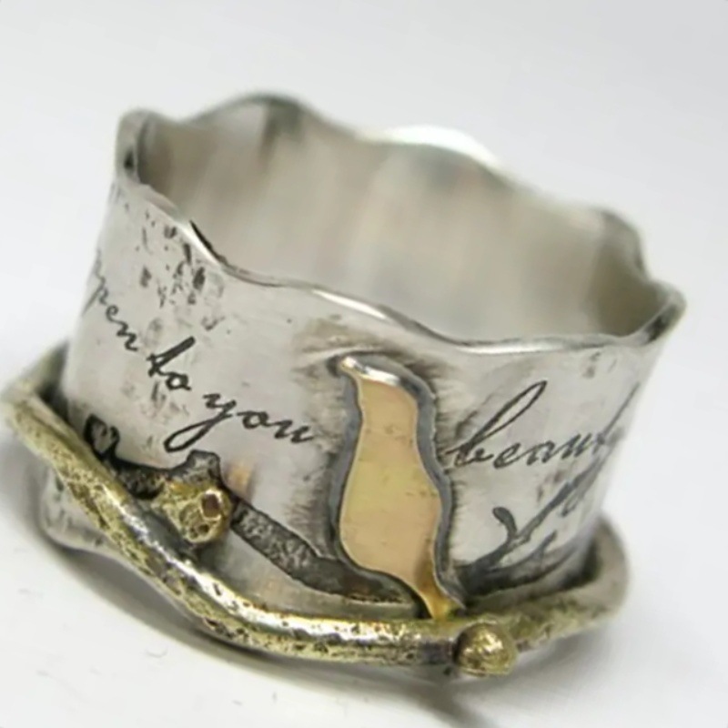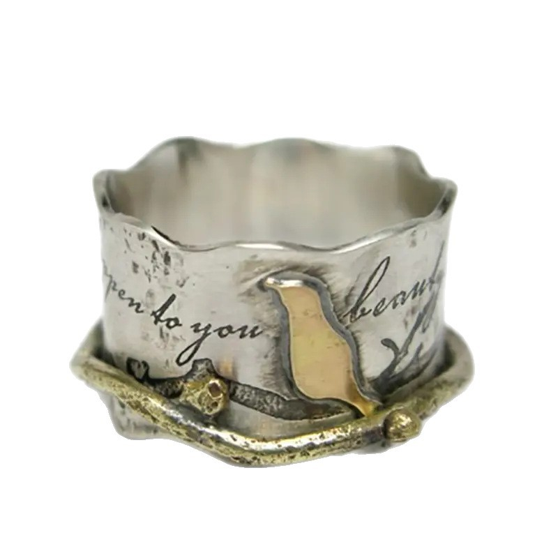Custom-designed Retro Ring With A Wide Band And A Bird Motif