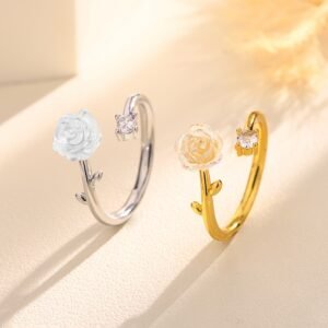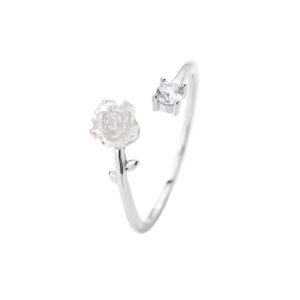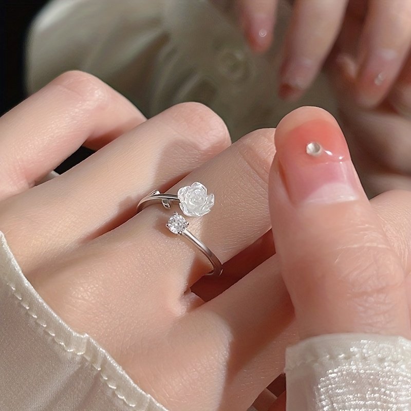 New Thorn Camellia Open Ring For Women, Sweet Girlish Style, Adjustable Rose Flower BFF Pair Rings, Perfect Gift Choice