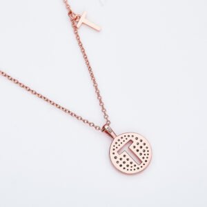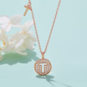 One Of The 26 Letters, T, Set With Top-quality Moissanite, Luxurious And Fashionable Light Luxury Trend Jewelry, Silver Necklace Pendant S925 Silver Electroplated Rose Gold