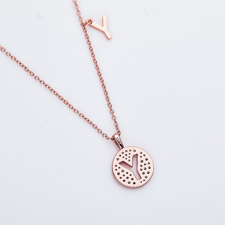 One Of The 26 Letters, Y, Set With Top-quality Moissanite, Luxurious And Fashionable Light Luxury Trend Jewelry, Silver Necklace Pendant S925 Silver Electroplated Rose Gold