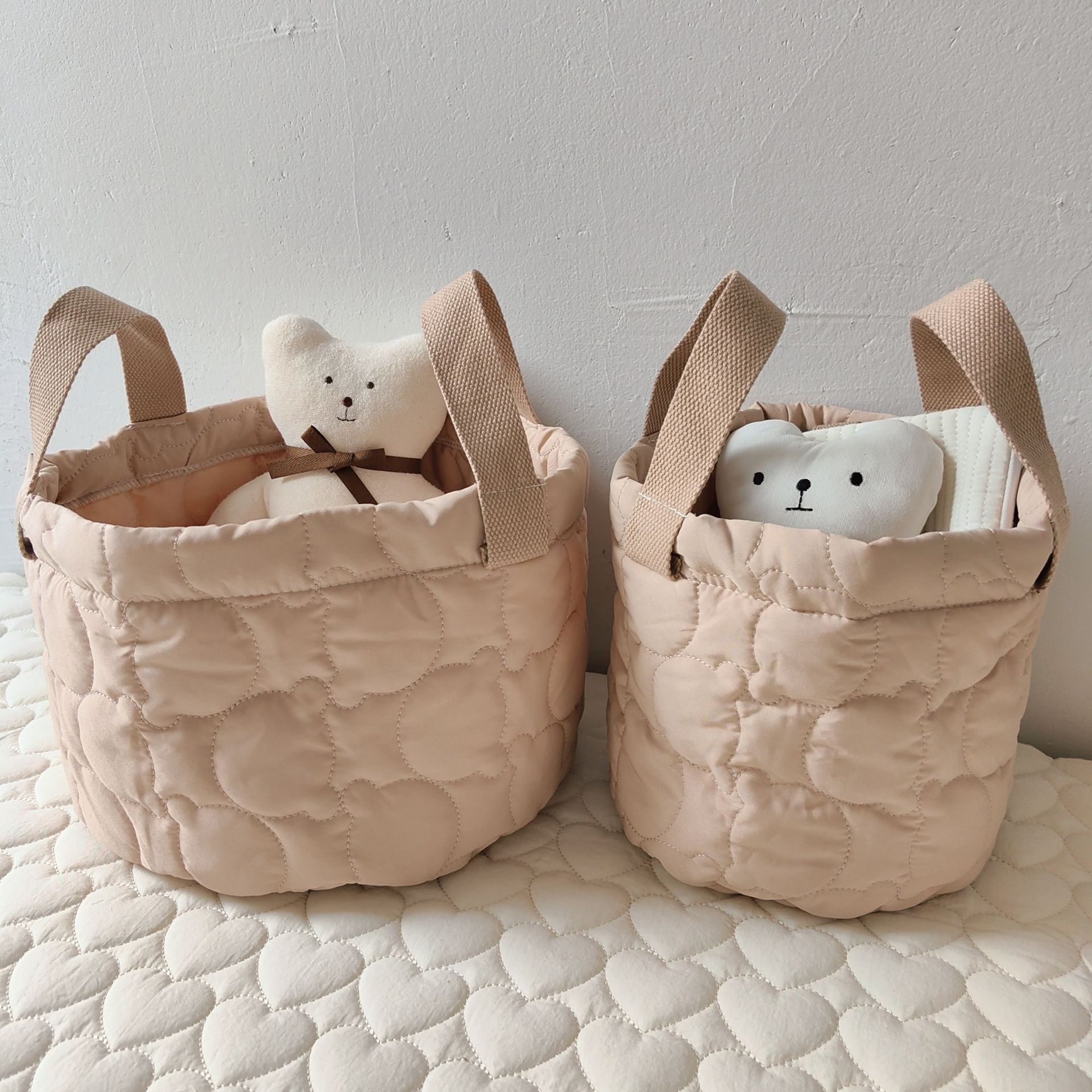 Color: Love rectangular basket (32*20 * 20cm), love large basket (diameter 28 * 21cm), love small size basket (diameter 20 * 15cm), white Bear Head large size storage bucket (diameter 28 * 20cm), White Bear Head Small size storage bucket (diameter 21 * 19cm), khaki bear head large size storage bucket (diameter 28*20 cm0), khaki Bear Head Small size storage bucket (diameter 21 * 19cm)