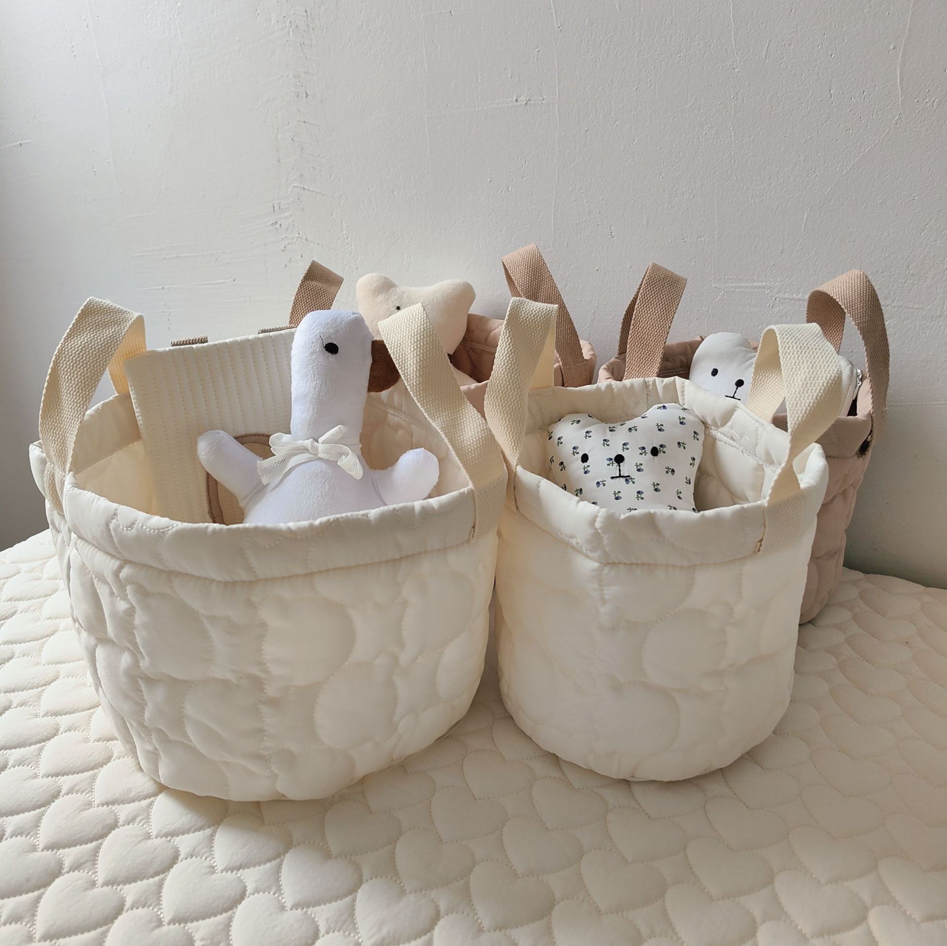 Color: Love rectangular basket (32*20 * 20cm), love large basket (diameter 28 * 21cm), love small size basket (diameter 20 * 15cm), white Bear Head large size storage bucket (diameter 28 * 20cm), White Bear Head Small size storage bucket (diameter 21 * 19cm), khaki bear head large size storage bucket (diameter 28*20 cm0), khaki Bear Head Small size storage bucket (diameter 21 * 19cm)
