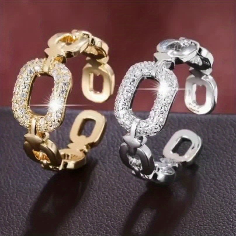 Women’s Elegant Adjustable Open Ring, Creative Design, Shiny Personalized Wedding Jewelry, Daily & Party Accessory
